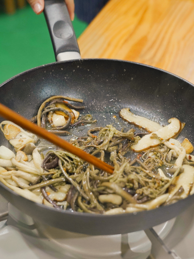 신흥2리 동백마을에서 직접 짜낸 동백기름과 제주의 고사리로 만드는 고사리 동백 오일 파스타 쿠킹클래스입니다. 귀한 동백기름과 로컬 재료를 활용한 요리와 식사를 경험해보세요 :)